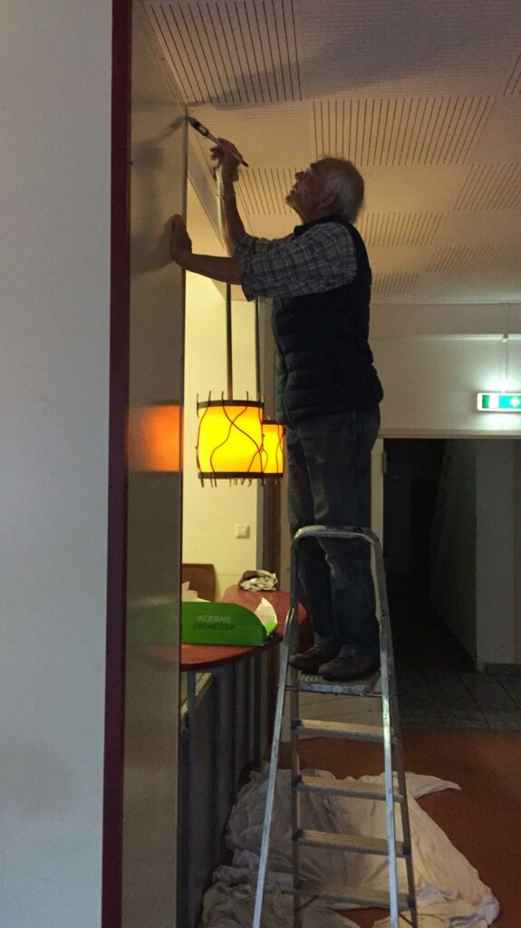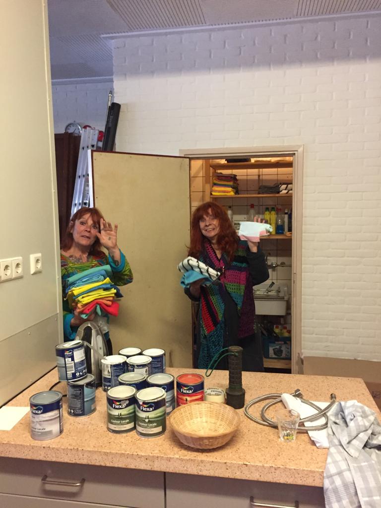 Jet laat haar spierballen rollen bij het leggen van nieuw zeil en schilderwerk in de bijkeuken, samen met Zeki. En door Antoinette’s welkom in de entreehal voel je je meteen thuis. Karin als Hoofd Klussen regelt, coördineert, sjouwt, organiseert, verplaatst en transporteert van alles, zo’n beetje 24/7. Ze draait haar hand echt nergens voor om, ongelooflijk, wat een energie die vrouw heeft! En door de onverdroten vrolijke en volhoudende ‘Yes we can-houding’ en power van Marjo, Yvonne, Rijnie, Jan Tijmen, Gerrie, Elise, Ellen, Jacqueline, Marcel, Mahnaz, Antoinette, Petra, Mary wordt alles met de dag een stukje frisser, mooier en opgeruimder….