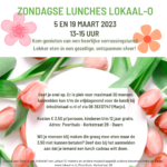 Genieten van een heerlijke zondagse lunchmaaltijd in een gezellige en ontspannen sfeer kan bij Lokaal-O in het Poorthuis, Kerkstraat 28, van 13 tot 15 uur. Het aantal deelnemers is maximaal 30. Zonder reservering kan helaas niemand mee-eten. Aanmelden kan t/m de vrijdagavond vóór de lunch via of bij Marjo, bel of app: 06-36312747 Kosten […]