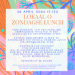 Kom genieten van een heerlijke verrassende lunchmaaltijd in een gezellige en ontspannen sfeer! Het aantal deelnemers is maximaal 30. Aanmelden t/m de vrijdagavond vóór de lunch via Kosten 3,50 euro, ter plekke te betalen (kinderen t/m 12 jaar gratis). Wie iemand blij wil maken die graag mee wil eten maar de 3,50 euro niet […]